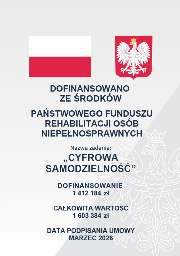 Projekt jest współfinansowany ze środków Państwowego Funduszu Rehabilitacji Osób Niepełnosprawnych w ramach Konkursu nr 1/2025 pn. „Siła możliwości”.